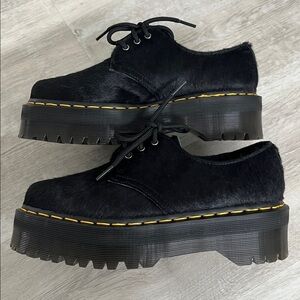 Doc Dr Martens 1461 Oxford Platform Shoes Black Calf Hair Leather Grunge Women 7