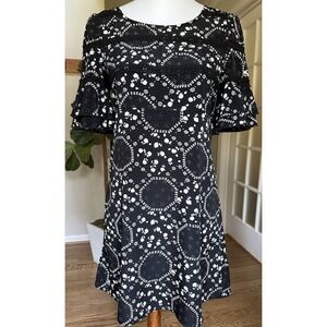 Free People Black White Floral Print Boho Dress Size 2 Ruffle Bell Sleeve