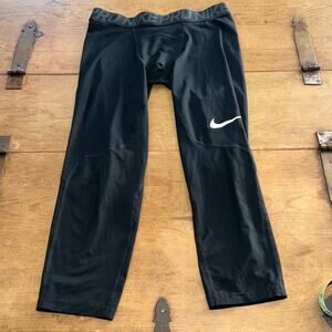 These Nike pro max leggings are crafted in a sleek black color, featuring a comfortable elastic waistband and a stretchy, form-fitting material ideal for athletic performance.