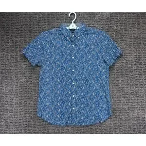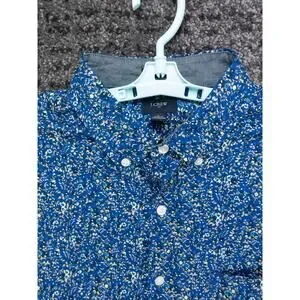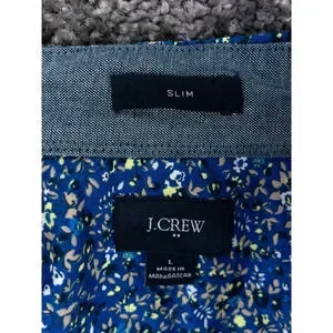 J Crew Shirt Mens Large Blue Floral Print Slim Stretch Short Sleeve Beach Casual
