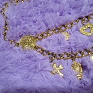 Elevate your style with this stunning gold chain charm belt. Perfect for adding a touch of elegance to any outfit.