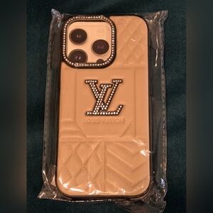 NWT** LV Beige Bling Quilted I Phone 16 Pro Phn Case (UNBRANDED) FASHON CASE FITS I PHONE 16 PRO
