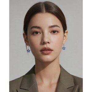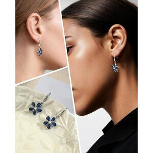 Floral Design] These blue earrings for women feature a delicate blue flower silhouette with created sapphire petals and a sparkling central crystal, bringing a touch of nature inspired charm. The intricate detailing and vibrant blue hue make these silver dangle earrings perfect for adding a feminine, sophisticated touch to any look