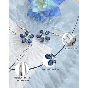 [Hypoallergenic Material] Crafted with 925 sterling silver plated metal and high quality created sapphires, these blue sapphire flower earrings offer lasting shine and durability. They are nickel, cadmium, and lead free, ensuring hypoallergenic comfort for all day wear of these blue floral earrings