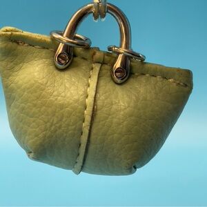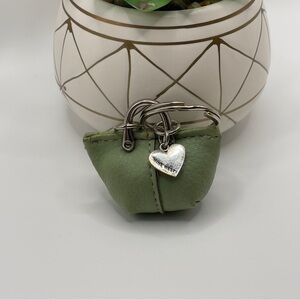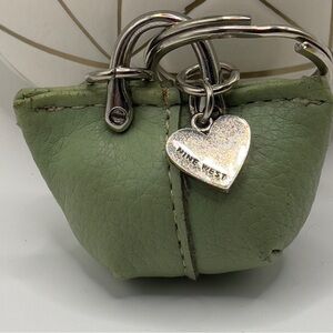 Vintage Nine West Mini Leather Purse Bag Charm Keychain Sage Green Heart Tag Y2K