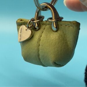 Nine West, vintage, Y2K, bag charm, keychain, purse charm, mini bag, leather keychain, heart charm, sage green, mint green, key fob, handbag accessory, 2000s, retro, branded charm