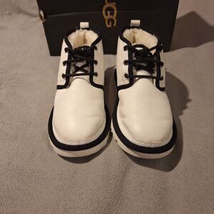 UGG M Neumel Boots-Men 7 Leather Chukka White Black Wool Lined 1133777 -EUC