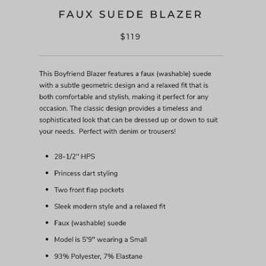Liverpool Stitch Fix New Suede Stretch Boyfriend Blazer NWT