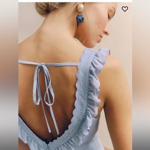 Reformation Sky Blue Ruffle Midi Dress
