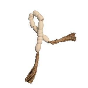 White chalk painted ceramic bead 20 garland with jute tassels.
