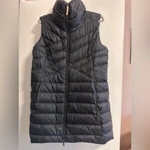 Stylish black quilted long vest.