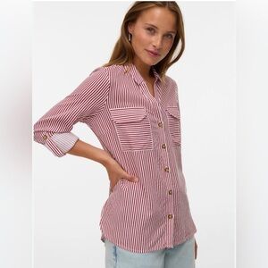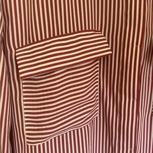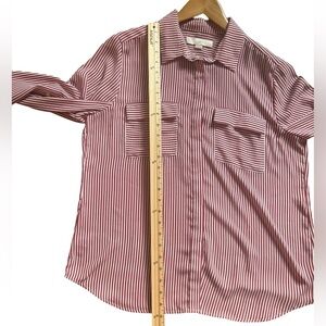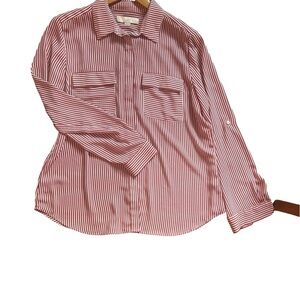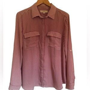 LOFT Women’s Stripped Dress Shirt Maroon and White Size L