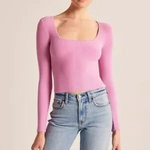 Abercrombie & Fitch Long Sleeve Ottoman Squareneck Top Pink