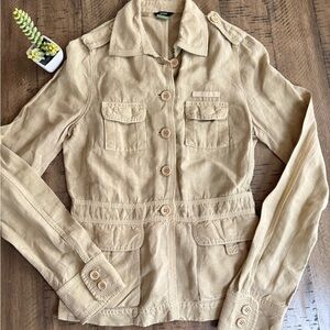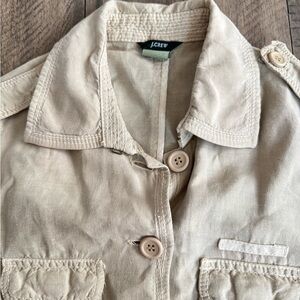 Discover the perfect blend of style and functionality with this J. Crew utility jacket. Crafted in a versatile tan hue, it features a classic collar and a structured silhouette, making it an ideal choice for any casual outing.