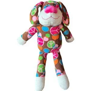 Dan Dee Sock Monkey Dog Plush Toy Peace signs Hippie Love 15"