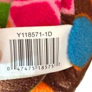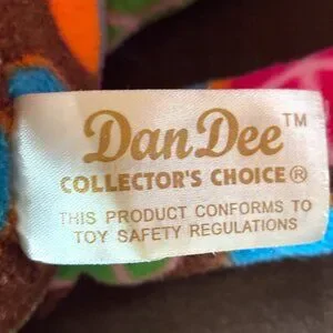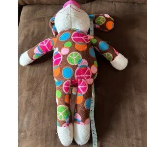 The Dan Dee Sock Monkey Dog Plush Toy is a 15-inch stuffed animal featuring peace signs and a hippie love theme. Made in China in 2011, this medium-sized plush toy belongs to the Dan Dee brand and is part of the character family of dogs. Perfect for fans of vintage toys and collectors of unique stuffed animals, this toy embodies a whimsical and fun-loving aesthetic that is sure to delight both children and adults alike.