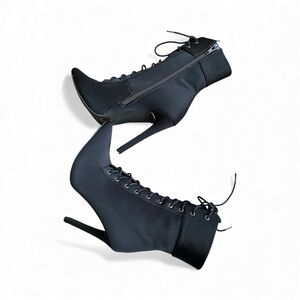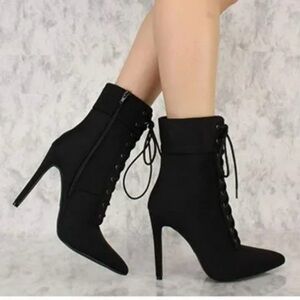Elevate your look with these elegant black lace-up heeled boots. Perfect for adding sophistication to any outfit.