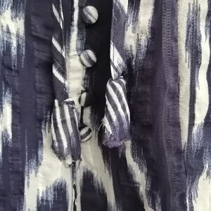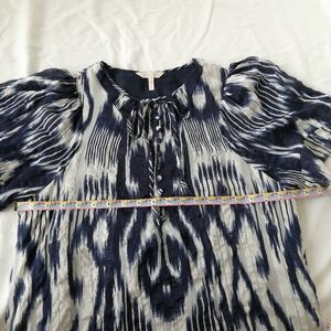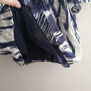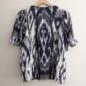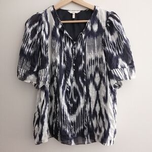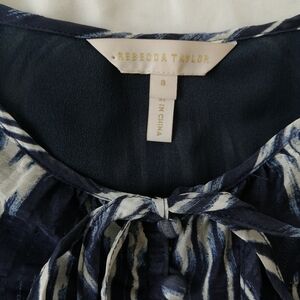 Rebecca Taylor Silk Short Sleeve Button Up Blouse Tie Neck Blue White 8