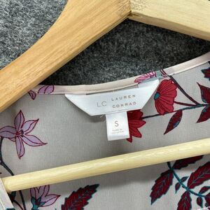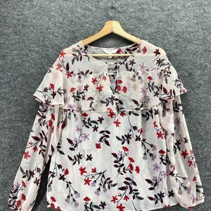 LC Lauren Conrad Blouse Women S Small White Floral Long Sleeve Round Neck Sheer