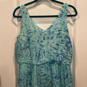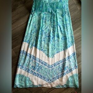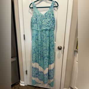 Vineyard Vines Palm Leaf Scarf Print Silk Maxi Dress Size 4 Turquoise Aqua Blue