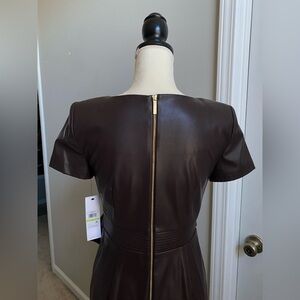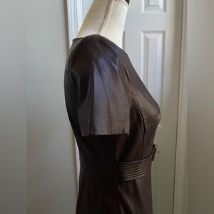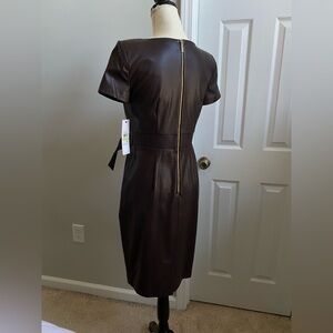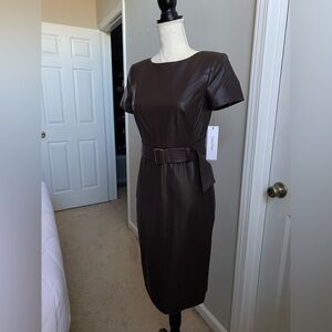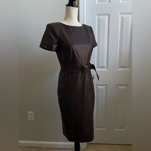 NWT Calvin Klein Belted Faux Leather Sheath Dress - Espresso Brown