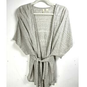Keywords: Anthropologie, Moth, gray kaftan, geometric knit, tie waist, lightweight, delicate knit, elegant, chic layering, relaxed style.