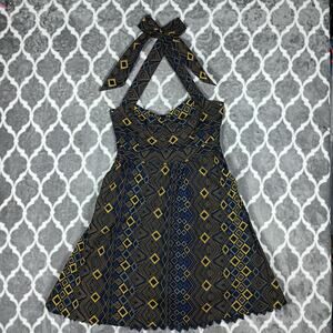 anthropologie boho halter summer dress geometric print indie boutique fit flare resort wear