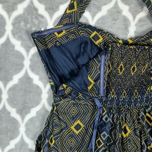 Edme & Esyllte Halter Dress Size 8Blue Geometric Pockets Smocked Back