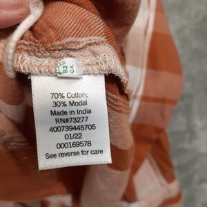 This women's XL rust orange plaid long sleeve button-up shirt from SO is lightweight and perfect for casual occasions during the fall and spring seasons. Made from a cotton blend knit fabric, this classic style shirt features a collared neckline and button closure. The shirt has a regular fit and classic/fitted sleeves, making it a versatile and stylish addition to any wardrobe. The colorful plaid pattern adds a fun and vibrant touch to the overall look, making it suitable for various themes including outdoor and cabincore styles. Made in India, this shirt is machine washable for easy care.