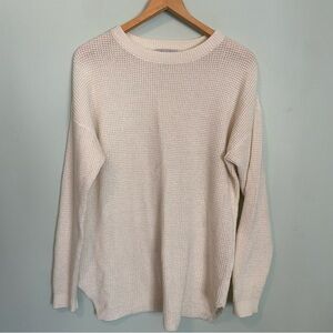 Kersh Cream Crew Neck Sweater with Ribbed Detailing merino wool blend.
