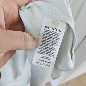 Chic long sleeve dress by Babaton. Light green hue. Features a stylish side slit. Ideal for elegant occasions.
