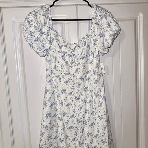Altar’d State Clara Ivory Blue Floral Puff Sleeve Mini Dress – NWT – Size S
