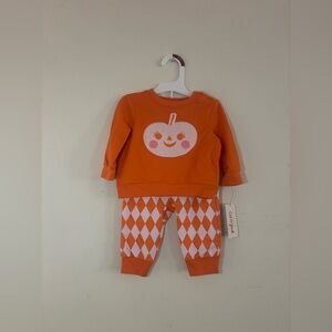 Baby Cat & Jack Matching Sets Orange Pumpkin Sweatshirt and Pants Set 3-6M