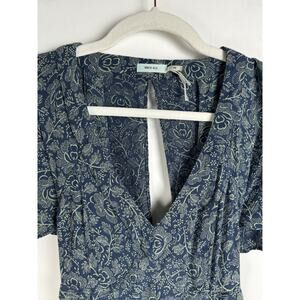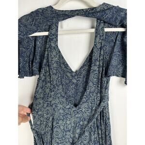 This beautiful blue mini dress from Urban Outfitters is perfect for any occasion. The dress features a floral pattern, V-neckline, and flutter sleeves. The dress is made of rayon material and has a zip closure. It is a fit and flare style dress with a blouson overall look. The dress is perfect for summer, fall, and spring seasons. It is suitable for travel, party/cocktail, and casual occasions. The dress is available in XS size and is a regular fit. The garment care requires hand wash only. The dress is not vintage and is not personalized. It is a great addition to any bohemian-themed wardrobe.