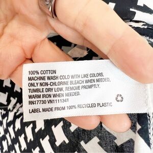MERONA BLACK WHITE PRINT LONG SLEEVE HENLEY NECKLINE BLOUSE WOMENS SZ LARGE