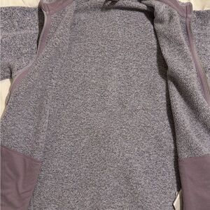 Cozy gray full-zip fleece jacket with a high collar. My child loves these! Had to buy a different size. Great used condition