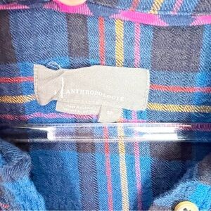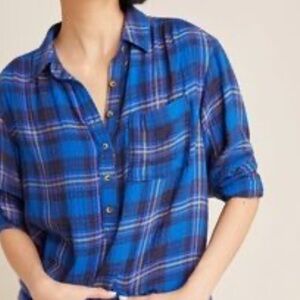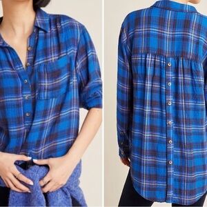 ANTHROPOLOGIE BLUE PLAID ISADORA BUTTON BACK TUNIC BLOUSE WOMENS SZ SMALL PETITE