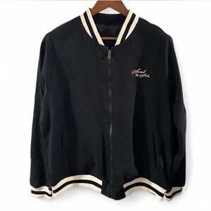 Brand new with tags; Originally $200; Reversible; Embroidered Logo; Stylish navy bomber jacket with a subtle pattern. Perfect for casual outings and versatile styling.