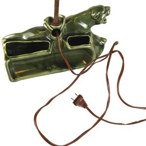 Vintage Green Panther Lamp MCM Ceramic Cougar Planter/Lamp