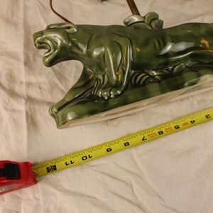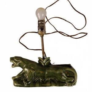 VINTAGE GREEN PANTHER LAMP MID CENTURY MODERN CERAMIC COUGAR PLANTER/LAMP ANTIQUE COLLECTIBLE.