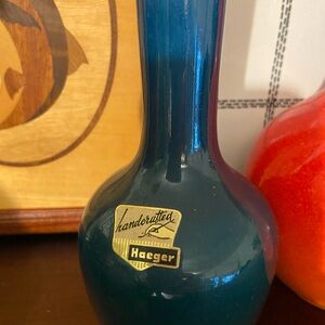 Blue vase is approximately 7.5” tall