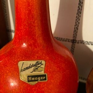 Vintage Haeger Mid Century Modern vases. Pair Atomic Orange and Blue