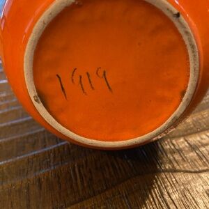 Atomic Orange vase measures 10.25” in height and a 2.75” at the base diameter of the vase itself is approximately 5.00”