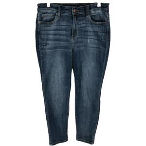 Judy Blue Bleach Splash Boyfriend Fit Jeans High Rise Denim Cuffed Blue 11/30