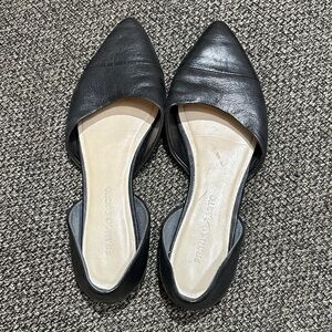 Chic black flats with a sleek design. Ideal for versatile wear; day or night. Crafted by Franco Sarto. Pointed toe, black leather. Size 6 (no size making on the shoe but that’s my size!). Very lightly worn, very great condition!