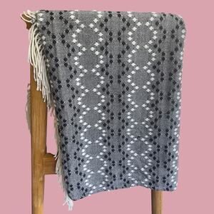 West Elm throw blanket geometric black white gray pattern
