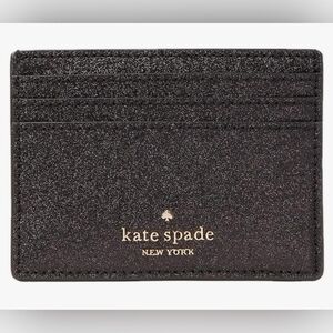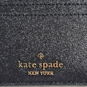 Kate Spade New York Glitter Boxed Small Faux Leather Card holder Black N…