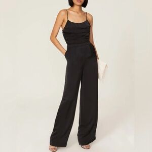 Ramy Brook Black Satin Ezra Jumpsuit size 8 wide leg designer classic piece