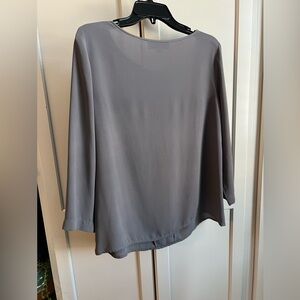 Chic charcoal blouse with elegant pleats. Ideal for versatile styling. Tiny blemish pictured. Barely noticeable. Breezy and sophisticated.