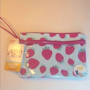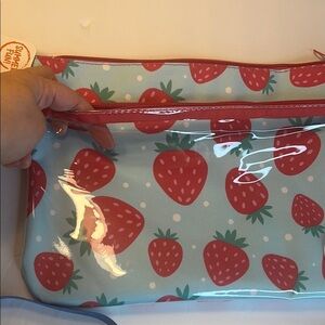 🍓Strawberry Print Wristlet Cosmetic Pouch Clutch Baby Blue and Pink